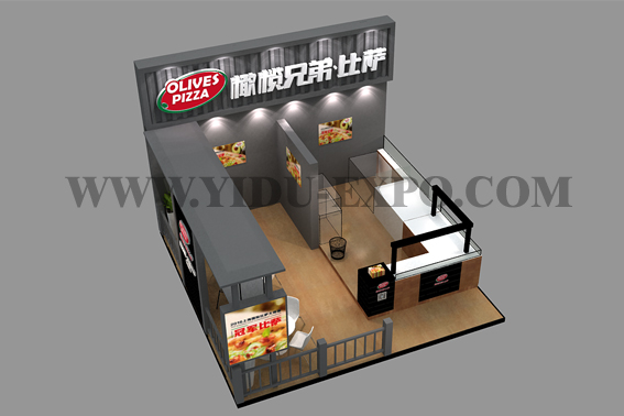 上海展会设计搭建总是会有层出不穷的展台出没在各大展会,展馆里的上海展会设计搭建工作人员也是忙的晕头转向!那么就来看看这次上海展会设计搭建亿度国际在加盟展里的作品吧。橄榄兄弟比萨品牌精心打造一个独特的拥有激情口感的比萨配方,坚持100%手工制作的比萨饼,100%天然酵母发酵的优质面团,100%纯正进口马苏里拉芝士,100%特质比萨酱,100%的新鲜馅料,给美食爱好者带来更多美食新体验。橄榄兄弟比萨餐厅搭配多种特色小食,意面意饭,及时尚饮品。用最好的味道和服务,带给消费者美妙的比萨之旅。